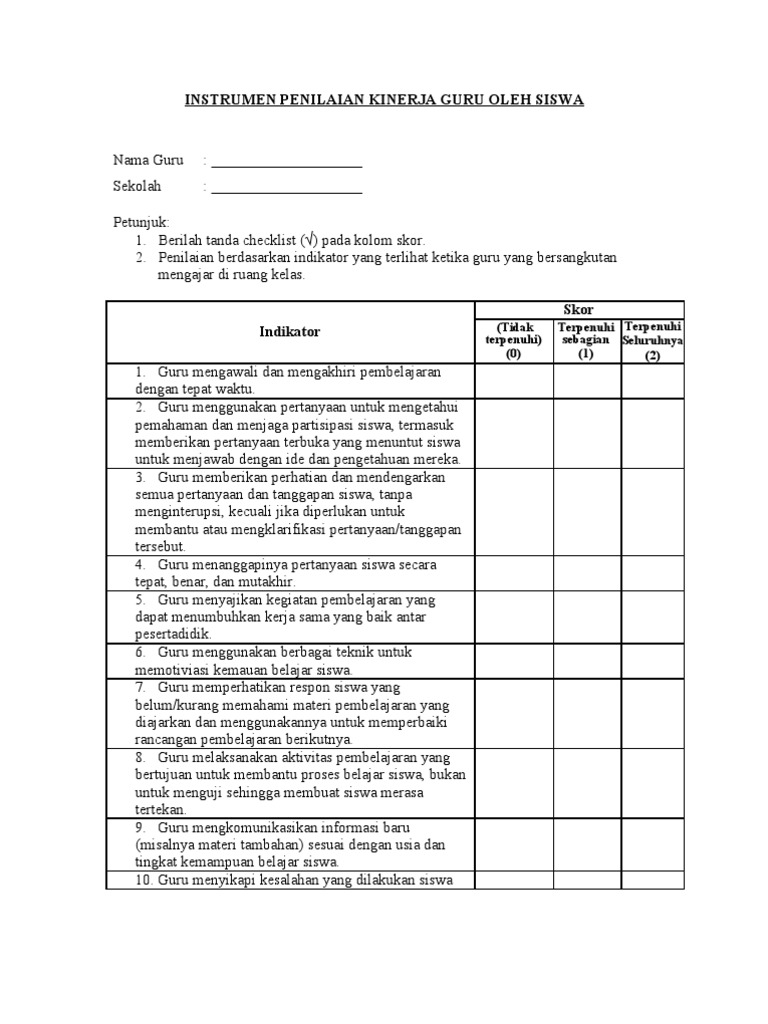 Perusahaan minimal melakukan penilaian tersebut 1 kali dalam 1 tahun. 2 rekap hasil penilaian kinerja guru kelas/mata pelajaran a nama : Upaya peningkatan profesionalisme ini pun sejauh mungkin perlu dilakukan secara terukur. Guru menggunakan pertanyaan untuk mengetahui pemahaman dan menjaga partisipasi peserta didik, termasuk memberikan pertanyaan terbuka yang menuntut peserta didik. Sehingga, manajemen dan pegawai usahanya lebih.