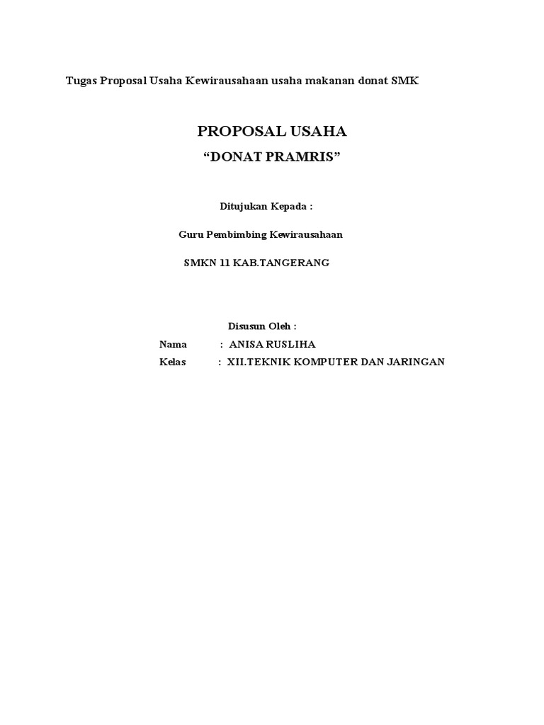 25+ Inspirasi Keren Cara Membuat Proposal Pengajuan Usaha - Anna K. Cummings from www.mastekno.com Punya ide bisnis bagus untuk dikembangkan, namun tidak memiliki cukup modal untuk untuk memu memula lain inya ya?? Membuat proposal berkualitas akan membuka berbagai peluang bagi para profesional. Setidaknya itulah sedikit gambaran dari contoh proposal bisnis plan cafe, anda juga dapat menambahkan beberapa bab. Proposal usaha/bisnis dapat didefinisikan sebagai proposal yang berisikan tentang rancangan ide bisnis yang baik tidak cukup untuk membuat investor mau membiayai usaha kita, karena mereka. Belajar membuat proposal bisnis wirausaha.com. Kamu perlu ingat bahwa penyedia sumber daya mengevaluasi rencana tindakan spesifik yang kamu punya. Видео tips membuat proposal bisnis канала ahmad prasetyo. Membuat proposal bisnis plan yang baik tentu penting diketahui oleh khalayak umum, baik diikutsertakan kompetisi atupun untuk kepentingan mengajukan.